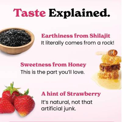 Raw Honey & Natural Strawberry: Unlike other brands that use corn syrup, we use real honey. The SHE-Lajit Strawberry Honeysticks have an earthy, smoky undertone balanced by a mild fruity note, ensuring you get the benefits of the herbs without synthetic aftertastes.